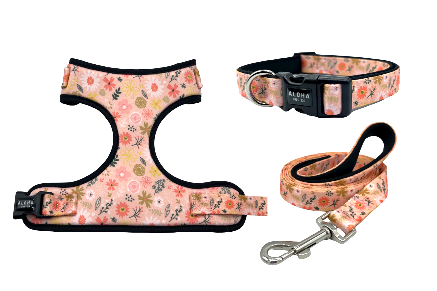 Our latest Matching Set features a perfectly paired harness, collar, and leash — designed to turn heads on every adventure. With bold colors and durable hardware, this trio is built for style, comfort, and everyday exploration.