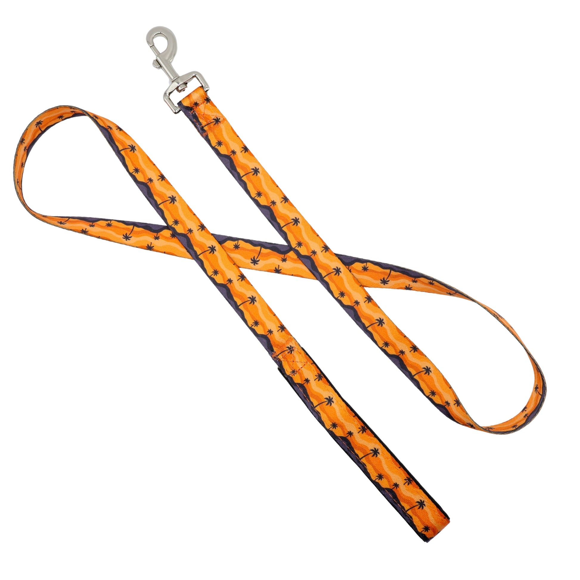 This leash captures that magic sunset moment with warm golden skies and swaying palm silhouettes. Whether you're strolling the beach at dusk or just heading to the park, this 5-foot leash brings those peaceful island feels to every adventure.
